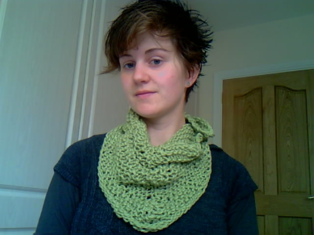 This is the fourth time I've made this hat (twice for myself, but both versions have been repurposed), so I'm getting good value for the eighty cents or so that it cost me. This is for my brother's girlfriend, whose name is also Jen! When she visits she sleeps in the room beside mine, and we never know which of us is being called, and it's mildly entertaining. I've found it to be a bit small before, so I knit it on 5.5mm needles, and I'm happier with the resulting fit. I used Debbie Bliss Rialto Chunky, but I think I could have gone for a super-bulky yarn - it looks a bit too lacy and gappy to weather a serious Winter. Pretty, though! (Sorry for the blurriness of the last photo, but I think it shows it off reasonably well if you pretend it's in focus.)